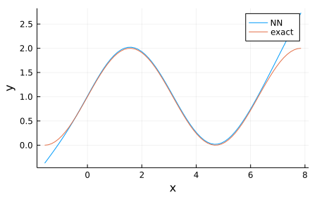 plot!(plt,x->y(x),xlim=(0-1.0,2π+1.0),xlabel="x",ylabel="y", label="NN", size=(450,320))